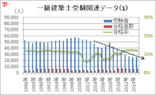 このように、このまま対策を講じなければ、少子化、若い受験者の減少にともない合格者の減少、さらに60歳以上の建築士がリタイヤしていく中で、今後、建築士が不足していくことが考えられることから、卒業後の若い受験者の数を増やし、継続的かつ安定的に建築士の人材を確保したいという事からも改正されたようです。