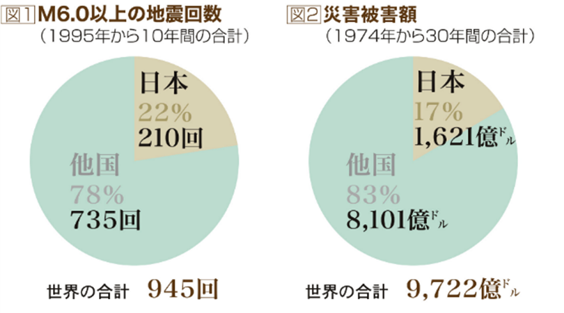 図1のように、世界ではM6以上の地震が95年から10年間の間に945回発生しており、そのうち22%に当たる210回もこの小さな日本で起こっています。年平均で21回も発生しています。