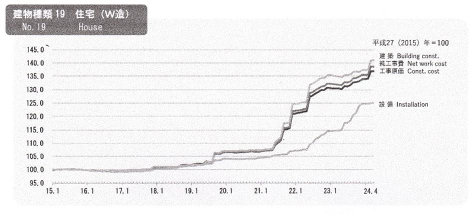 つまり、4年前の住宅工務店、坪単価が60万円なら、現在は約83万円ということになります。ハウスメーカーだけで見ると、坪当たり100万円前後の相場となっています。