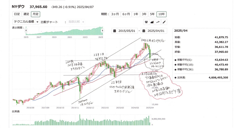 ・そして4月7日、今回のトランプ(関税)ショック最安値36611ドル。